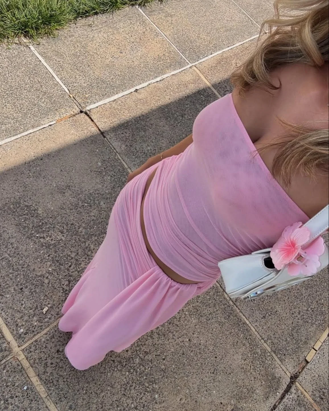 Featuring a strapless corset style bodice with a flattering sweetheart neckline, this mini dress hugs the body in all the right places. A draped overlay skirt with soft pleats at the side seams adds movement, while the attached scarf flowing from the left underarm brings a touch of dramatic flair. Fully lined and finished with an invisible zip for a seamless fit, this dress is your go-to for elevated evenings and standout moments.
